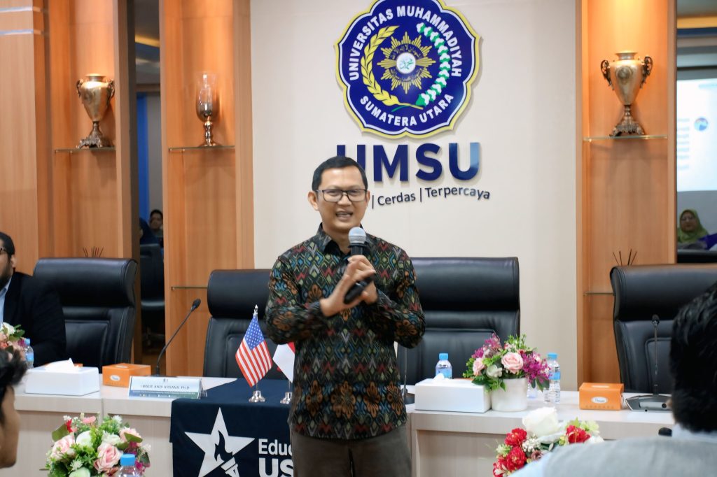 Distinguished speakers, including Jacob Hosier and Dr. I Made Andi Arsana, shared insights on best practices in global education, intercultural engagement, and international research collaboration, providing valuable perspectives to support UMSU’s efforts toward becoming a globally connected university. The event was held on Thursday, April 24, in the UMSU VIP Room, and was attended by faculty leaders, international affairs officers, and academic stakeholders committed to advancing the university’s global vision.